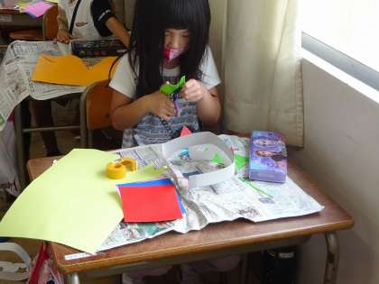 2年生で初めての工作活動。紙で作ったティアラに飾りつけ、わっかをつけてへんしん!
