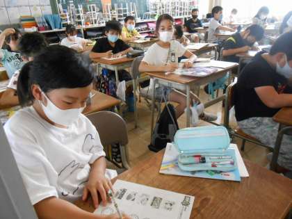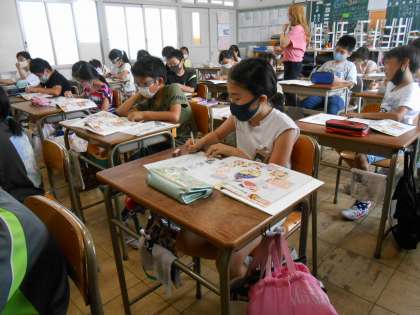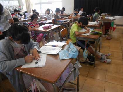 楽しい外国語 【6月25日(金)の4年生】 公開日 2021/06/25 更新日 2021/06/25 4年 今日は時間の学習。 英語で何時のことを言っているか分かったかな? プリントに答えを書いてきます。