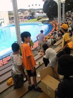 たんぽぽ学級の宿泊学習一日目です。南知多ビーチランドにいます。みんなで楽しく昼食をとりました。