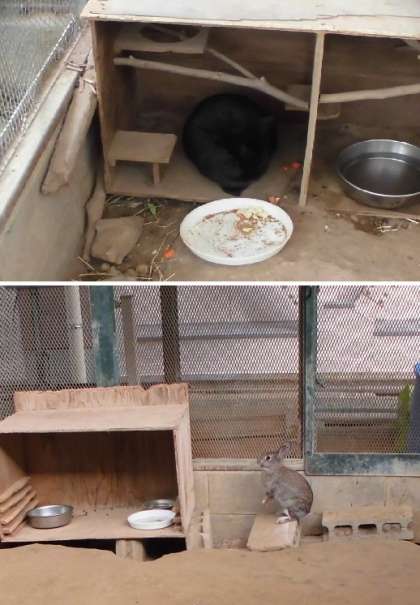 ショコラは部屋替えをしませんでしたので落ち着いて生活しています。きなこがショコラの様子を心配してのぞいています。