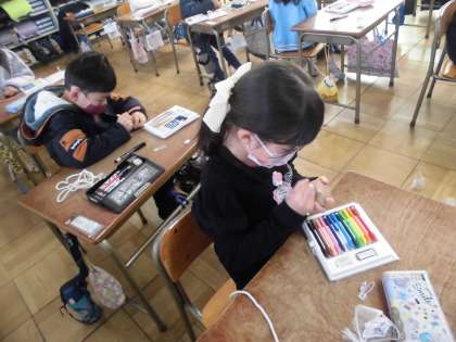 こまに色を塗ったよ【12月20日(月)の1年生】