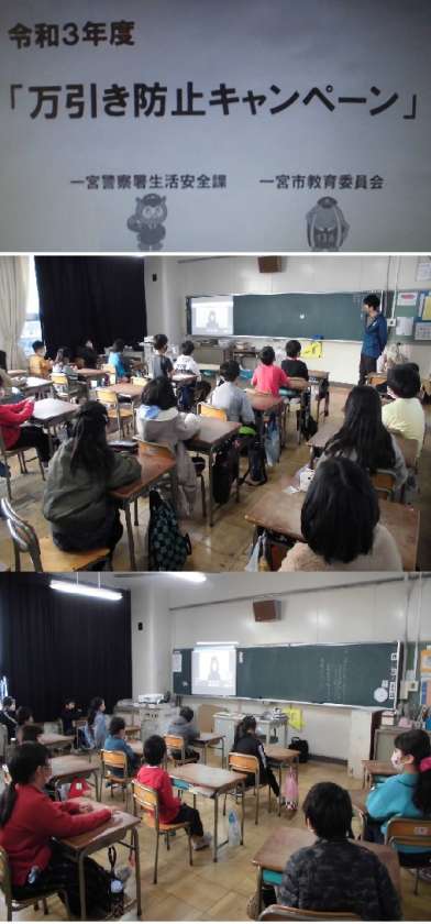 一宮警察の方による万引き防止講話をオンラインにて行っていただきました。冬休みを楽しく・安全に生活できるようにしていきましょう。