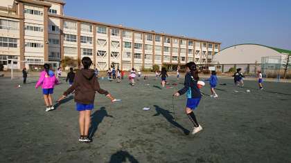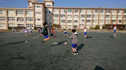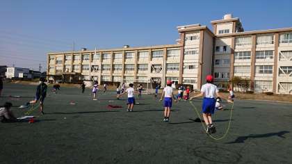 今日も、午後は暖かい陽射しが降り注いでいます。運動場では、個人なわとびをがんばってます。