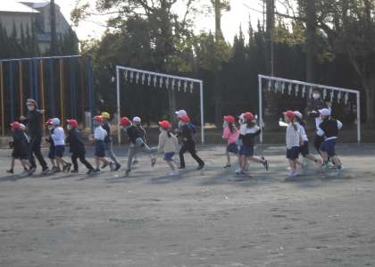 体育の授業【12月21日(火)の1年生】 公開日 2021/12/22 更新日 2021/12/22 1年 運動場をランニングしてから縄跳びの練習を始めました。個人でのチャレンジ、30秒チャレンジ、大縄跳びを頑張りました。