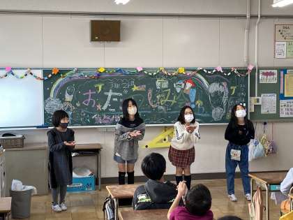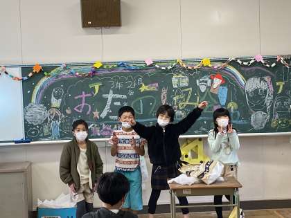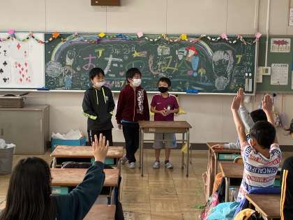 お楽しみ会その4【12月22日(水)3年生】 公開日 2021/12/22 更新日 2021/12/22 3年 ダンス、クイズ、マジックなど子どもたちが考え練習した出し物を発表しました。 どの出し物も、とても盛り上がりました。