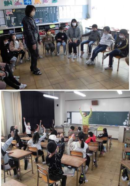 ふれあい【12月28日(火) 1,2年生】 公開日 2021/12/28 更新日 2021/12/28 1年 今年も残すところ3日となりました。2学期も感染拡大防止を意識しながら、ふれあいタイムを実施し、子どもたちのなかに「であい ふれあい、わきあいあい」を感じさせる笑顔がみられました。今後も感染状況が心配されます。子どもたちの笑顔を大切に活動を進めていきます。