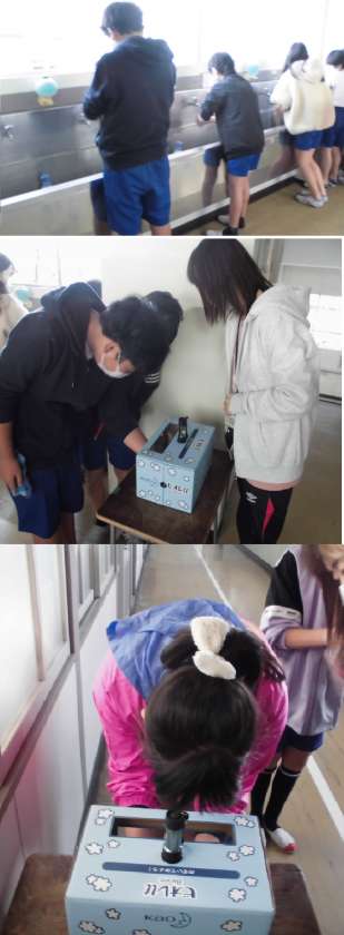 コロナ対策をしよう【1月13日(木) 6年生】 公開日 2022/01/13 更新日 2022/01/13 6年 しっかり手洗いができているか確認しています。自分にとって、よりよい手洗いの仕方を体験しました。感染しないようにしていきましょう。