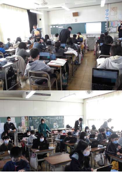 円と多角形【1月13日(木) 5年生】 公開日 2022/01/13 更新日 2022/01/13 5年 校外からも先生をお招きして研究授業を行いました。円周率を用いて、円周や直径を求める問題の解き方を考えていきました。