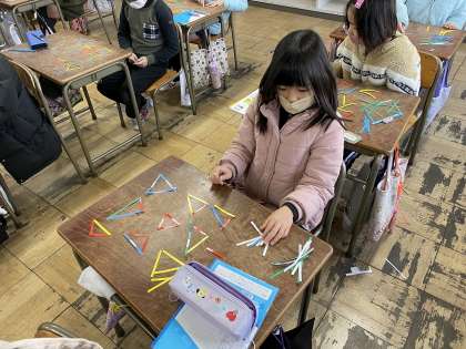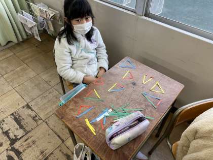 正三角形や二等辺三角形など新しい言葉も覚えました。