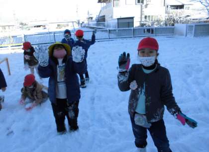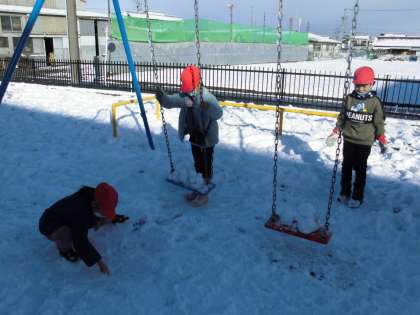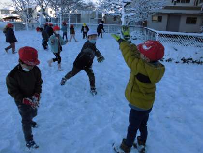 丸めたり、山にしたり、投げたり、掘ったり…雪の感触を楽しんでいました。