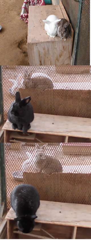 ウサギたちは、みんなん元気です。バニラときなこは、ショコラを撮影するときも撮影者のほうを見ています。ショコラは、撮影後に箱から飛び降り、駆け寄ってきました。浅井中小学校の子が優しい心で接してくれている。そのことが、ウサギの行動にあらわれています。子ウサギたちは、撮影できないほどの勢いで、駆け寄ってきてくれました。