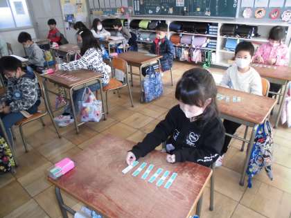 100までの数【1月17日(月)の1年生】 公開日 2022/01/17 更新日 2022/01/17 1年 葉っぱの数を10までのまとまりをつくって数えたり、100までの表をみて、きまりを見つけたりしました。