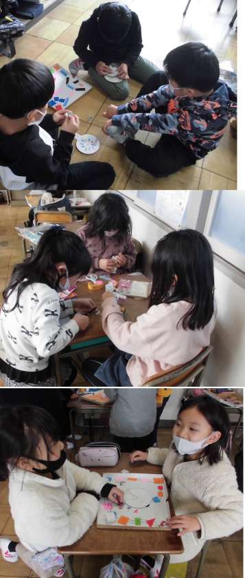 つくったゲームで遊びながら、友達が表したかったことや工夫を味わっています。