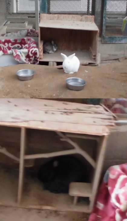 きなこは小屋の奥、バニラは小屋から出てじっとしています。ショコラも昨日同様、小屋の奥でじっとしています。子ウサギむたちは、木箱のなかにいて見えません。自分に合う方法をほみつけて、寒さに耐えています。