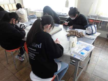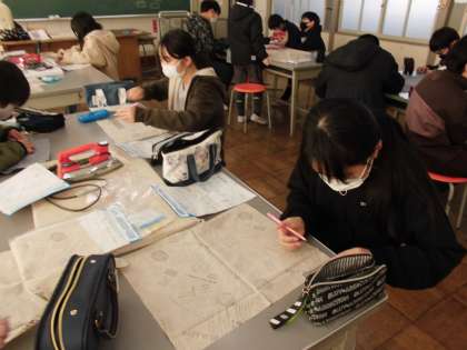 家庭科の学習で、ティッシュカバーを作っています。