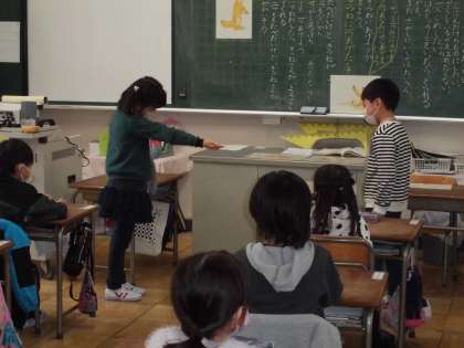 道徳の授業【1月19日(水)の1年生】 公開日 2022/01/20 更新日 2022/01/20 1年 「くりのみ」を読んで、困った人のために、どんなことができるといいのかを考えました。登場人物のウサギとキツネの役になって話すことで、どんな気持ちになるかを話し合うことができました。