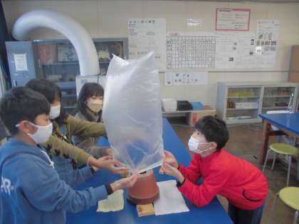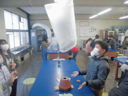 ミニ気球を飛ばしました その1【1月21日(金)の4年生】