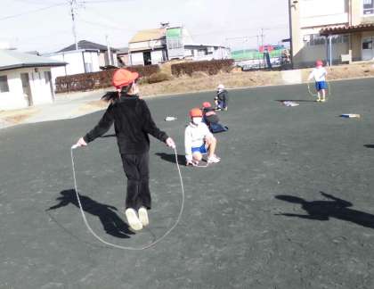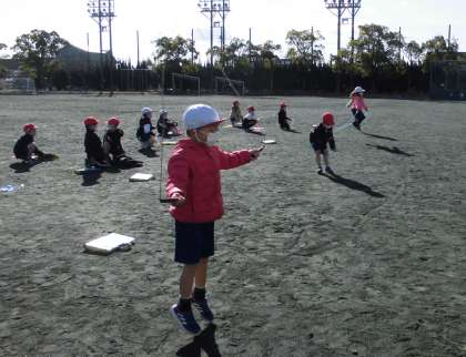 縄跳びのいろいろな技が何回跳べるかを確かめました。みんなで一緒に数えながら友達の頑張りを応援しました。