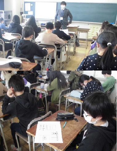 出前授業【3月9日(水)6年生】 公開日 2022/03/09 更新日 2022/03/09 6年 中学校の先生に来校いただき、数学の出前授業をしていただきました。まずは、自分の力で解いてみようと言われ、自力で挑戦しています。