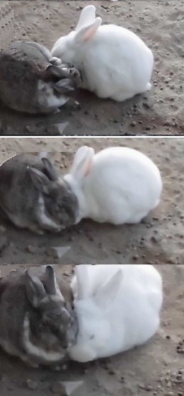 みんなのウサギ【3月10日(木)本校自慢のウサギたち】 公開日 2022/03/10 更新日 2022/03/10 みんなのウサギ きなこが、バニラの毛づくろいをしています。バニラは気持ちよさそうに目を閉じています。