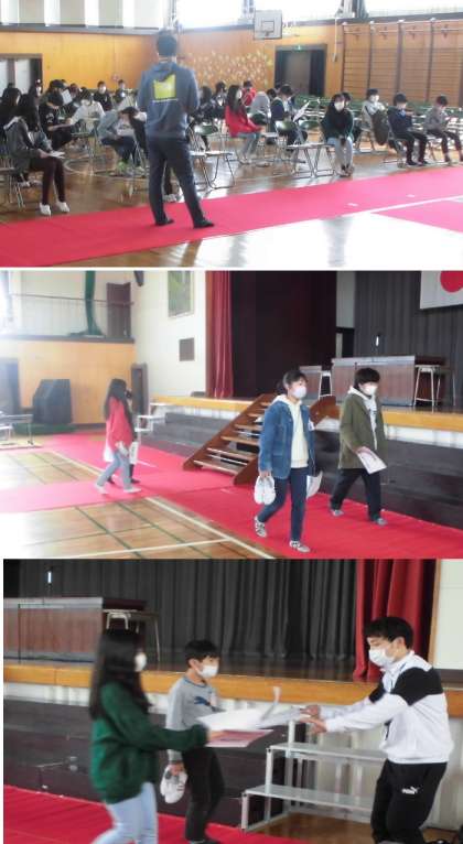 練習時間縮小のなかでの、卒業式の練習を行いました。卒業証書の受け取り方を練習しました。