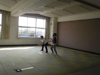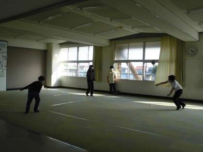 お楽しみタイムで、みんなでドッチボールをしました。終わる頃には、汗びっしょりになっていました。