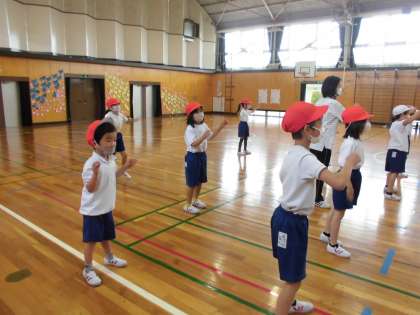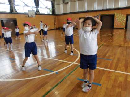 1,2年生合同の体育でした。運動会ダンスの振り付けを習いました。