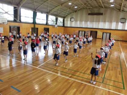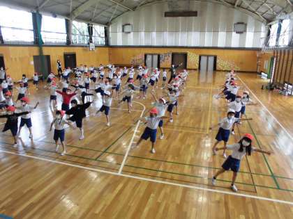 1年生と2年生合同で、はじめて運動会のダンスの練習をしました。