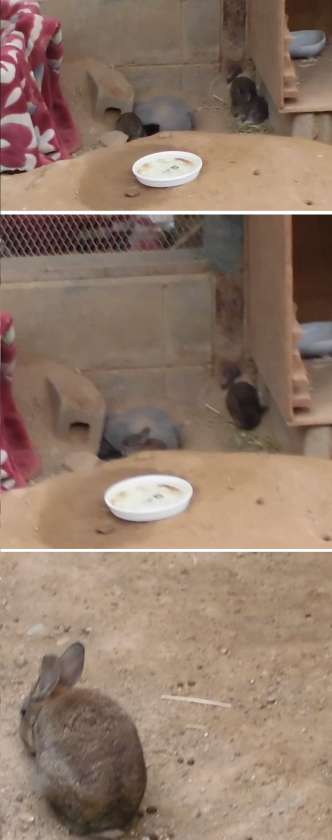 昨日から、姿をみせた赤ちゃんウサギは元気です。今朝も、一部の子が見えるところに、出てきていました。まだ、人には慣れていないようですので、みなさんの優しい心をあげてください。きっと、他のウサギのように近づいてくるようになります。母親のきなこは、遠くから赤ちゃんを見守っています。