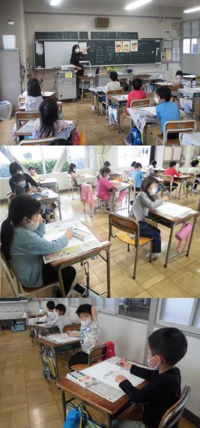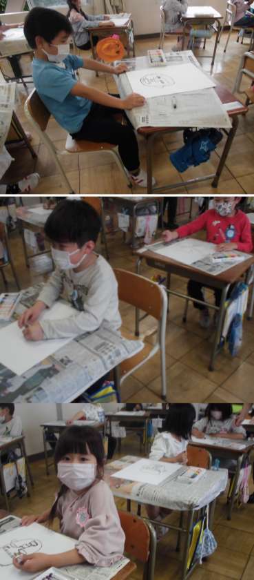 かおやてをかこう【5月14日(金)1年生】 公開日 2022/05/13 更新日 2022/05/13 1年 目、口、鼻、まゆげ、顔、耳、髪の毛の順に顔をかいています。自分の顔がどんどんできあがっています。
