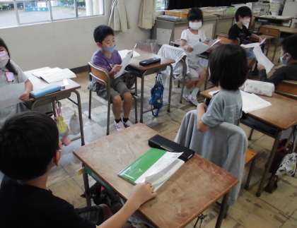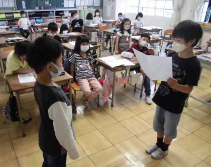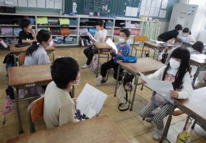 国語の授業【5月13日(金)の2年生】 公開日 2022/05/13 更新日 2022/05/13 2年 「たんぽぽのちえ」の学習では、ペア対話を行いました。友だちと考えを伝えあい、楽しく学ぶことができました。