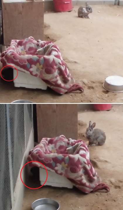 みんなのウサギ【5月16日(月)本校自慢のウサギたち】 公開日 2022/05/16 更新日 2022/05/16 みんなのウサギ 今日もきなこだけ、出てきていました。赤ちゃんウサギの姿がありません。赤ちゃんウサギを心配していると、写真の赤丸のところでじっとしていました。生きています。よかった。よかった。うれしいです。きなこは、遠くから見守っているようです。