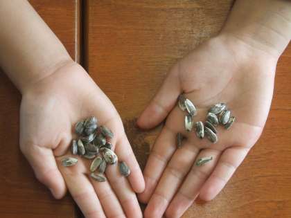 10/18 ひまわりの種取り 公開日 2010/10/18 更新日 2010/10/18 1年 5月から育てていたひまわりの種を、みんなで取りました。下に落ちてしまったのか、食べられてしまったのか、残念ながら少ししか取れませんでしたが、種がどのようにできるのか、観察することができました。今度、学年園では、チューリップなどを育てる予定です。また、大切に育てていこうね。