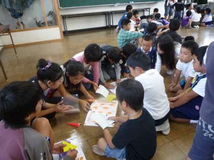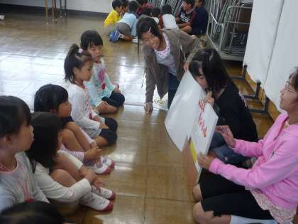 来年度に入学予定の子たちの就学時健康診断のお手伝いをしました。写真は全ての検査が終わり,しばらくの間の待ち時間に6年生が読み聞かせをしている様子です。その他の仕事も優しくしっかりとすることができました。頼もしい6年生でした。お手伝いありがとう。