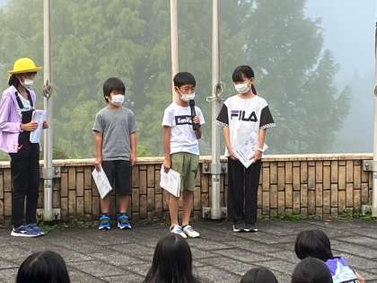 野外教育活動 朝のつどい【9月10日(土)の5年生】 公開日 2022/09/10 更新日 2022/09/10 5年 朝のつどいの様子です。 浅井北小学校、浅井南小学校と合同で行いました。 校長先生からは同じ浅井中学校区ということで、みんなで協力してすばらしいリーダーになっていこうという話がありました。 今日も一日元気に活動していきましょう。
