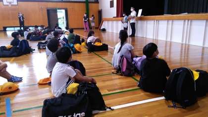野外教育活動 出発式【9月9日(金)5年生】 公開日 2022/09/09 更新日 2022/09/09 5年 たくさんの保護者の方々に参加していただき、出発式を行いました。実行委員の子が立派に司会をしてくれました。