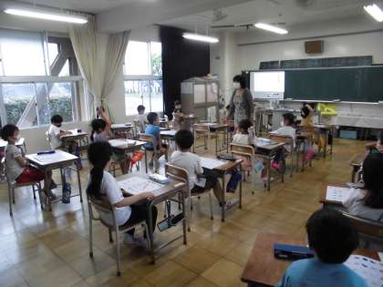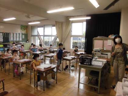 書写の授業&給食当番 【9月9日(金) 1年生】