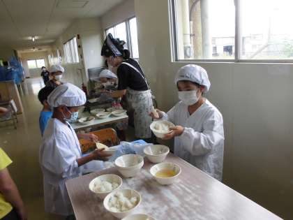 2学期から給食当番として、おかずやご飯のつけ分けを頑張っています。