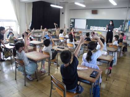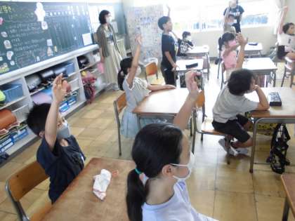 色の名前を英語で覚え、いろいろなゲームをしました。体を動かして楽しく活動できました。
