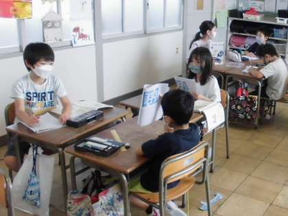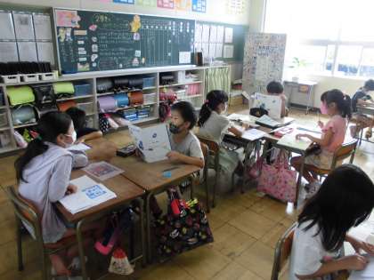 国語の「ことばでみちあんない」の学習では、友達の道案内を聞いてメモを取り、それをもとに待ち合わせの場所へ行けるかを確認しました。