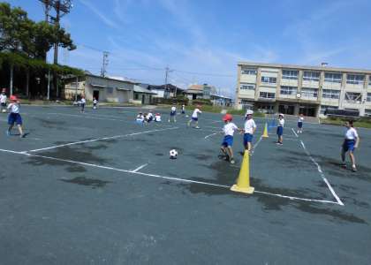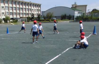 シュートゲーム【9月12日(月)の2年生】 公開日 2022/09/12 更新日 2022/09/12 2年 体育の「ボールけりゲーム」では、シュートゲームをしました。どのようにけったら守りに取られずにゴールできるかを考え、力いっぱいシュートしていました。