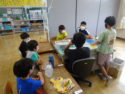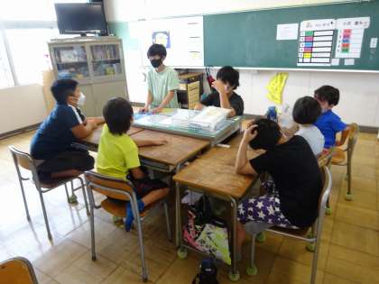 朝、登校後のひとコマです。たんぽぽ学級内での交流の輪が広がっています。実りの秋ですね!