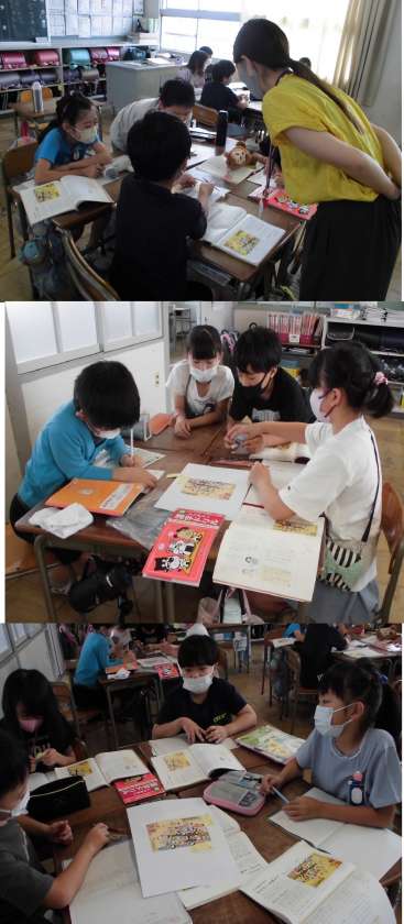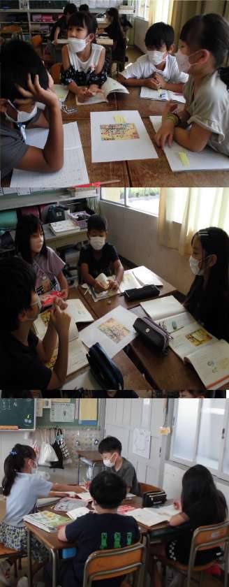 「ポスターのれい」を見て、工夫していると思うことを話し合っています。