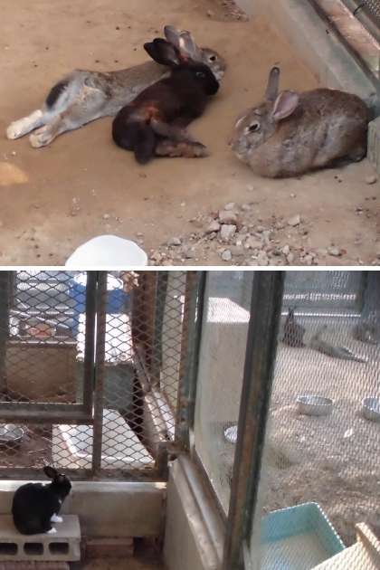みんなのウサギ【9月14日(水)本校自慢のウサギたち】 公開日 2022/09/14 更新日 2022/09/14 みんなのウサギ モナカとココアは、のんびりと寝そべっています。くろみつが遠くからきなこ、モナカ、ココアの様子を見守っています。