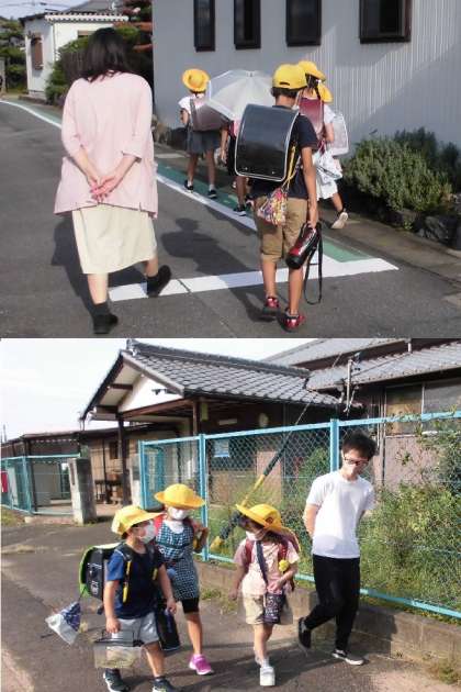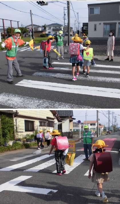 今日もたくさんのPTAの方々、見守り支援の方々に守られて、無事に登校を終えることができました。ありがとうございました。今日の下校は、1年と2年が14:55、3年〜6年が15:50の予定です。よろしくお願いします。