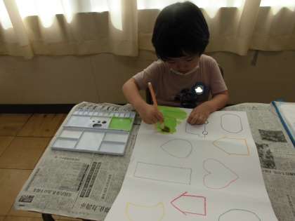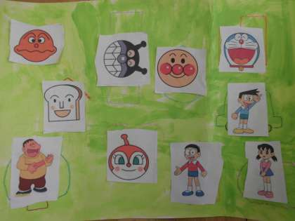 活動の様子【9月5日〜15日のたんぽぽ】 公開日 2022/09/15 更新日 2022/09/15 たんぽぽ 画用紙に水彩絵の具で色を塗り、大好きなアニメキャラクターのイラストをはさみで切り分けて、一つ一つのりで貼りました。