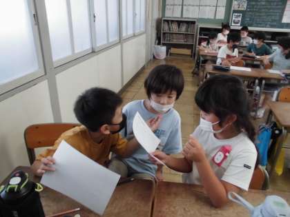 活動の様子【9月16日(金)のたんぽぽ】 公開日 2022/09/16 更新日 2022/09/16 たんぽぽ N1グランプリの練習が始まりました。ペア、トリオのグループで、自己紹介をしていました。とても楽しそうです。うまく伝わったかな?