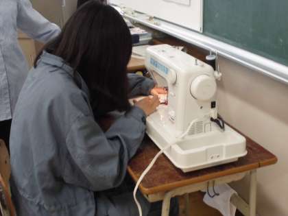 家庭科でナップザック作りに挑戦しました。