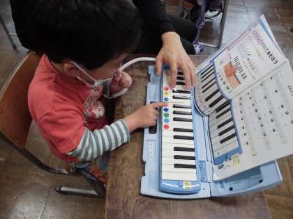 活動の様子【10月7日(金)のたんぽぽ】 公開日 2022/10/07 更新日 2022/10/07 たんぽぽ 今日は、2時間目に音楽、3時間目に英語の交流授業がありました。 鍵盤ハーモニカは、ド・レ・ミの3音を出せるようになりました。 英語ではアルファベットを習い、みんなと一緒に楽しく活動できました。
