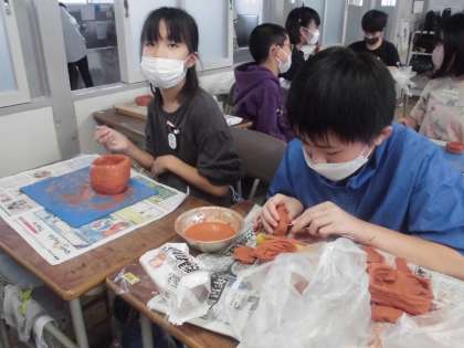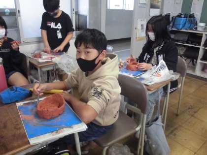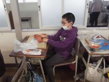 「どべ」と呼ばれるものを粘土にぬって、粘土同士をくっつけて作品を仕上げていきました。